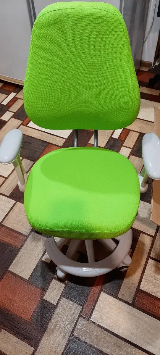 Сыну стул понравился, с удовольствием занимается. Ноги стоят на полу - без подставки. Поэтому покупалась именно эта модель, так как в других сидушка по высоте была выше. Кресло удобное и устойчивое. Ребёнку сложно его сдвинуть, но вылезти проблем нет.