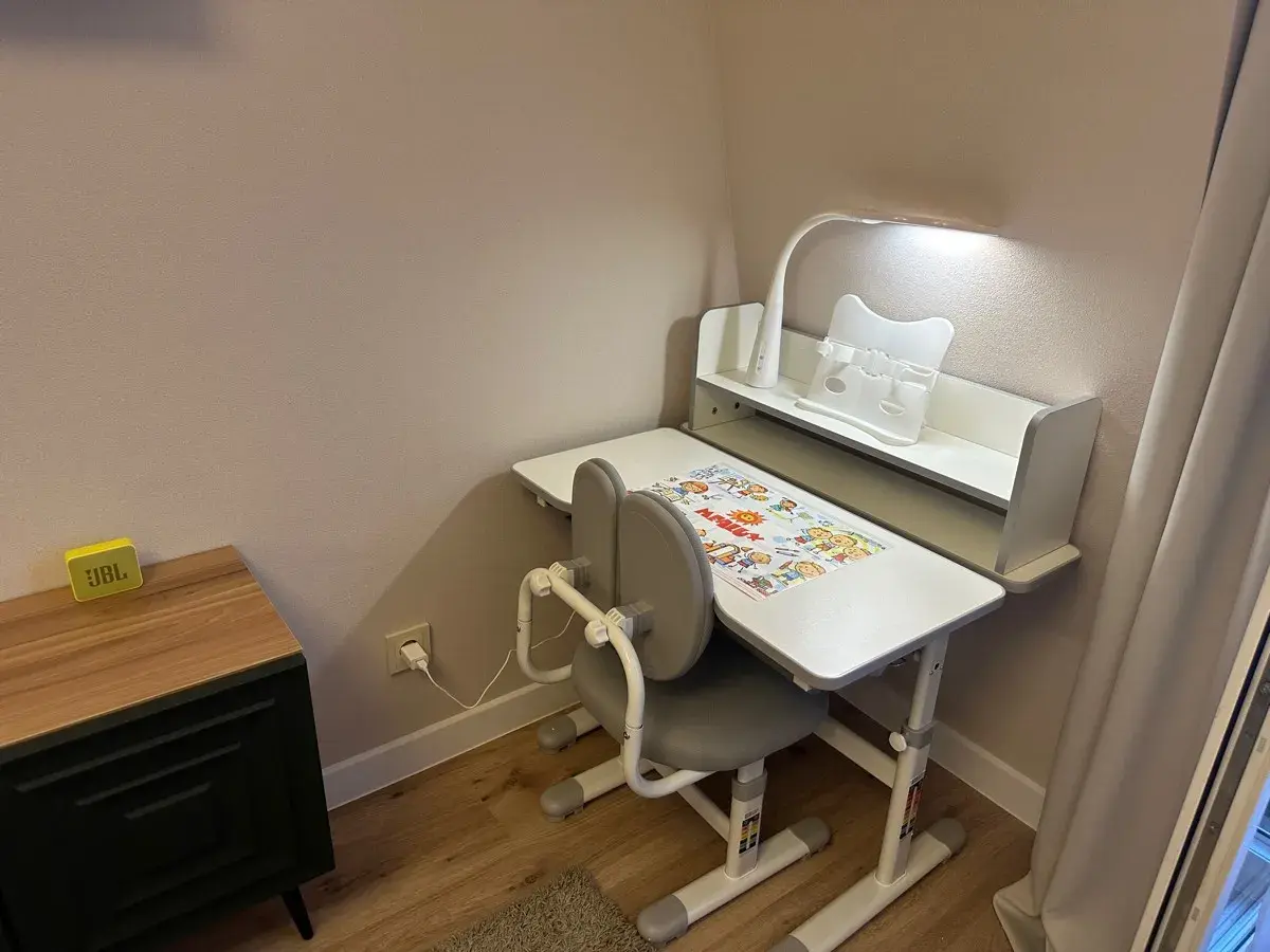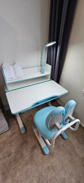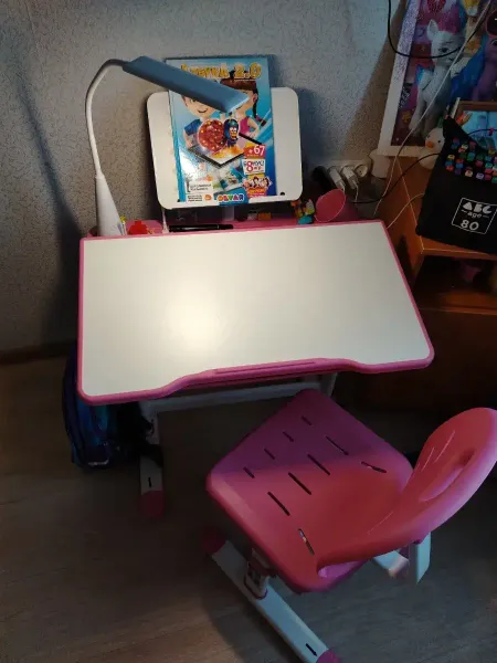 Долго выбирали, но в итоге не прогадали - по размеру парта подошла идеально (длиной 120 не влезала), выглядит красиво, подстроили под ребенка мебель без проблем, сидеть теперь комфортно. Спасибо менеджеру, подсказал что комплектом дешевле выходит, чем то же самое по отдельности) Теперь хотим большую лампу заказать