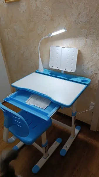 Товар пришёл быстро. Упаковано было всё идеально, все болты и запчасти по пакетам. Инструкция понятная, собрали быстро. Купили сыну к 1 классу. Парта и стул растут. Очень смотрится красиво, всё, что нужно, всё есть и даже сенсорная лампа. Сын и мы в восторге. Спасибо производителю за качественный и красивый товар.