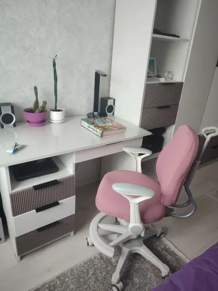 Пару лет назад покупали такую же, только без ящиков, старшему ребенку, до сих пор всё функционирует. Вместительная, собрал сам по инструкции без проблем. Тумбу подвешивать пока не стали, используем как сидушку (есть колесики). Вживую смотрится даже лучше чем на фото, в подарок положили коврик настольный и часы