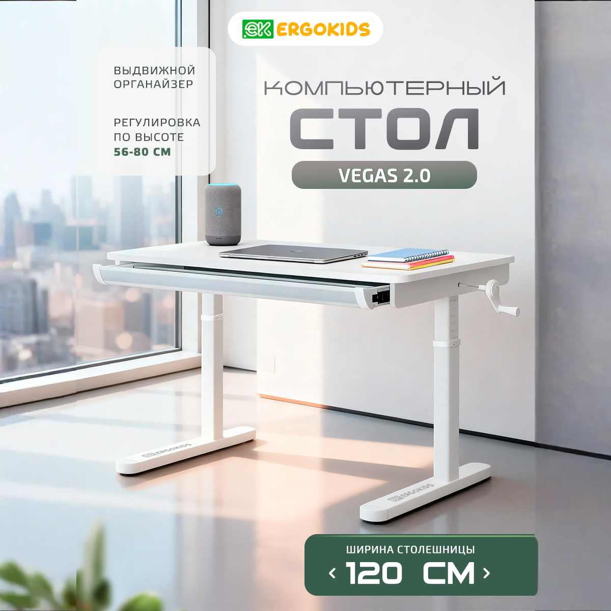 Регулируемый стол-парта для школьника или первоклассника Vegas 2.0 шириной 120 см, глубиной столешницы 60 см станет универсальным помощником для вашего ребенка.