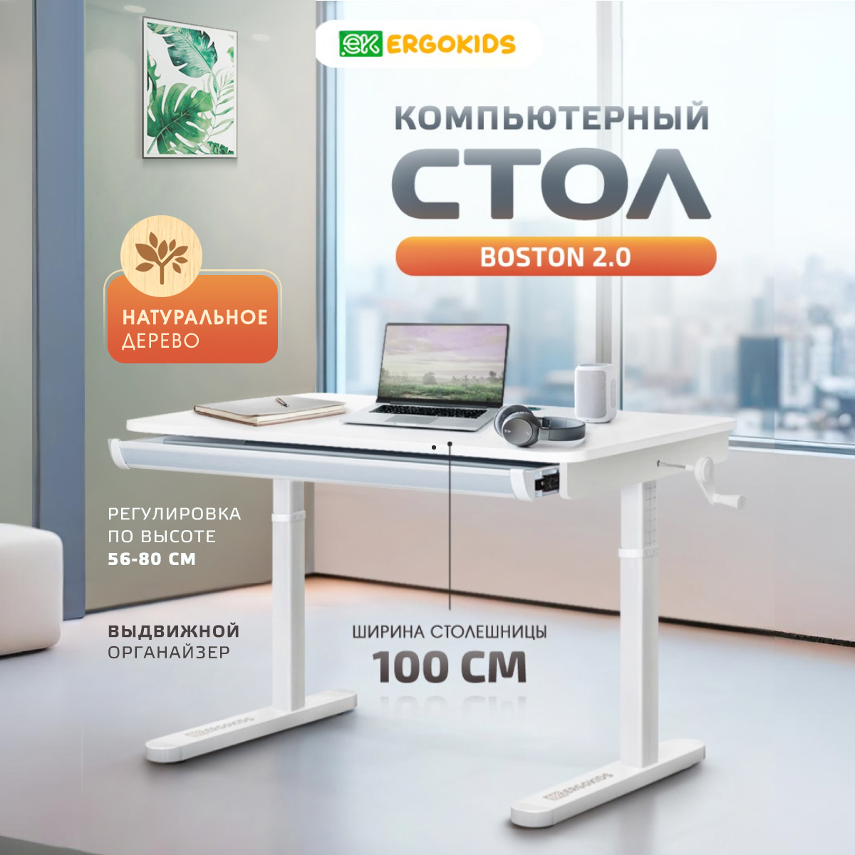Регулируемый стол-парта для школьника или первоклассника Boston 2.0 шириной 100 см, глубиной столешницы 60 см c максимальной высотой 80 см станет универсальным помощником для вашего ребенка.