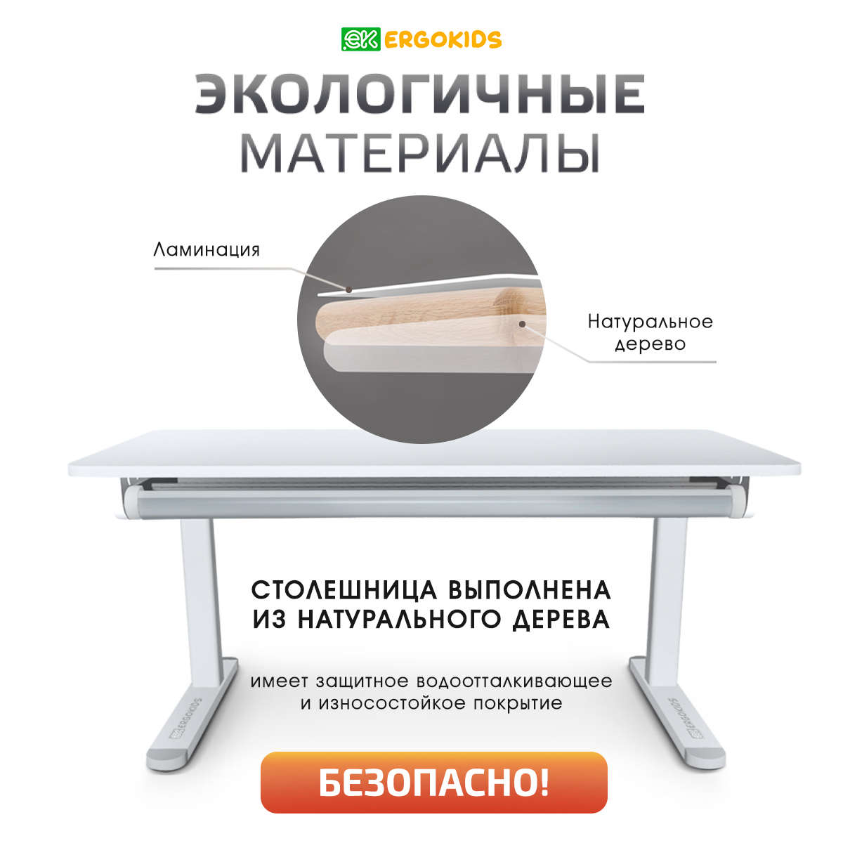 Стол для школьника оснащен выдвижным органайзером шириной, расположенным под столешницей. Выдвигающийся на 27 см пенал-органайзер сделан из прочного, безопасного пластика и позволяет удобно хранить и использовать школьные принадлежности. Столешница имеет защитное износостойкое и водоотталкивающее покрытие.